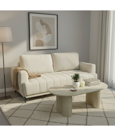 Canapé convertible Inès 3 places, élégant et fonctionnel, alliant design contemporain et praticité. Son assise moelleuse et ses lignes épurées en font un choix parfait pour les intérieurs modernes. Convertible, il se transforme facilement en lit pour un couchage d’appoint confortable. Idéal pour optimiser l’espace avec style.