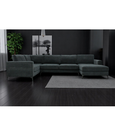 Le canapé Diana, 6 places, spacieux et élégant, allie confort, style et praticité. Parfais pour les salons modernes. Disponible en gris.